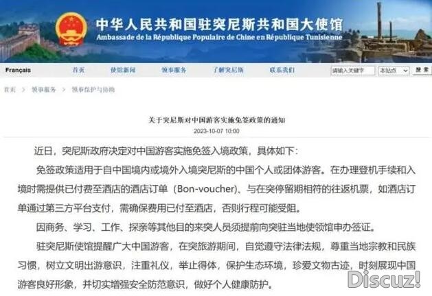 據(jù)中國駐突尼斯大使館網(wǎng)站7日消息,近日,突尼斯政府決定對中國游客實施免簽入境政策,具體如下: 免簽政策適用于自中國境內(nèi)或境外入境突尼斯的中國個人或團體游客。在辦理登機手續(xù)和入境時需提供已付費至酒店的酒店訂單(Bon-voucher)、與在突停留期相符的往返機票,如酒店訂單通過第三方平臺支付,需確保費用已付至酒店,否則行程可能受阻。 因商務(wù)、學(xué)習(xí)、工作、探親等其他目的來突人員須提前向突駐當(dāng)?shù)厥诡I(lǐng)館申辦簽證。 駐突尼斯使館提醒廣大中國游客,在突旅游期間,自覺遵守法律法規(guī),尊重當(dāng)?shù)刈诮毯兔褡辶?xí)慣,樹立文明出游意識,注重禮儀,舉止得體,保護生態(tài)環(huán)境,珍愛文物古跡,時刻展現(xiàn)中國游客良好形象,并切實增強安全防范意識,做好個人健康防護。 此外 還有這些國家和地區(qū) 對持普通護照中國公民 開放免簽或落地簽政策 一起來看 ↓↓↓ 01 亞洲 泰國 9月13日 泰國內(nèi)閣會議作出決定 對中國游客實施為期5個月的免簽政策 即從2023年9月25日起 至2024年2月29日 格魯吉亞 9月11日起 以旅游為目的來格的中國公民 可憑中國護照免簽入境 在格停留不超過30天 阿聯(lián)酋 入境、出境或者過境 停留不超過30天,免辦簽證 卡塔爾 入境、出境或者過境 停留不超過30天,免辦簽證 亞美尼亞 入境、出境或過境 停留不超過30天,免辦簽證 馬爾代夫 因旅游、商務(wù)、探親、過境等短期事由 擬在馬爾代夫停留不超過30天 免辦簽證 馬來西亞 卡帕萊島風(fēng)光 馬來西亞 持普通護照的中國游客 可在吉隆坡1號和2號國際機場等地 辦理停留期15天的落地簽證 印度尼西亞 赴印尼事由為 1、旅游;2、社會文化訪問 3、商務(wù)訪問;4、不會對安全產(chǎn)生干擾 且能夠?qū)崿F(xiàn)互利共贏的政府公務(wù) 可通過落地簽證入境 越南 持有效普通護照 符合情況可在各國際口岸 申請辦理落地簽證 緬甸 持有效期6個月以上普通護照赴緬甸 可申請辦理落地簽證 老撾 持有效期6個月以上護照 可在老撾全境國家級口岸辦理落地簽證 柬埔寨 持有效期6個月以上普通護照 或公務(wù)普通護照 可在航空和陸地口岸辦理落地簽證 簽證分為旅游落地簽證 和商務(wù)落地簽證兩種 孟加拉國 因公務(wù)、商務(wù)、投資 及旅游目的赴孟加拉國 憑有效護照和返程機票 可在國際機場和陸路口岸 辦理落地簽證 尼泊爾 申請人持各類有效護照及護照照片 且護照有效期至少6個月 可免費辦理停留期15至90天不等 的落地簽證 斯里蘭卡 入、過境且停留期 不超過6個月的外國公民 入境前在網(wǎng)上申請電子旅行許可 東帝汶 所有入境的中國公民 由陸路進入東帝汶 需提前在有關(guān)東駐外使館 或通過東移民局網(wǎng)站申辦簽證許可 通過海、空渠道入境,需辦理落地簽證 黎巴嫩 持有效6個月以上普通護照 赴黎巴嫩旅游可在 所有開放口岸辦理落地簽證 土庫曼斯坦 須事先由邀請人在土首都 或各州移民局辦理落地簽手續(xù) 巴林 持有效期6個月以上 普通護照可辦理落地簽證 阿塞拜疆 持有效期6個月以上普通護照 可在網(wǎng)上申請電子簽證 亦可在巴庫國際機場自助辦理30天以內(nèi) 一次入境有效的落地簽證 伊朗 持有效期6個月以上 公務(wù)普通護照和普通護照 可在伊朗機場口岸申請落地簽 停留期一般為30天 最長可延至90天 約旦 持有效期6個月以上普通護照 可在各陸海空口岸辦理落地簽 02 非洲 毛里求斯風(fēng)光 毛里求斯 入境、出境或過境 停留不超過60天,免辦簽證 塞舌爾 入境、出境或過境 停留不超過30天,免辦簽證 埃及 持有效期6個月以上普通護照 訪問埃及可申請落地簽證 馬達加斯加 持普通護照和往返機票 且出發(fā)地為中國大陸以外其他地方 可辦理落地旅游簽證 并按離境時間給予相應(yīng)停留期限 坦桑尼亞 持有效期6個月以上 各類護照或旅行證件 可辦理落地簽證 津巴布韋 赴津巴布韋落地政策僅針對旅游簽證 適用于津巴布韋所有入境口岸 多哥 持有效期在6個月以上護照 可在洛美埃亞得馬國際機場 及個別邊境口岸申請落地簽 佛得角 持有效期6個月以上的 普通護照入境佛得角 可在佛得角各國際機場辦理落地簽證 加蓬 中國公民可持有效旅行證件 國際旅行健康證及辦理 相應(yīng)各類簽證所需材料在 利伯維爾機場辦理落地簽證入境 貝寧 自2018年3月15日起 對包括中國游客在內(nèi)的 在貝寧停留8天以內(nèi)的國際游客 實行落地簽證政策 該政策僅針對旅游簽證 科特迪瓦 持有效期6個月以上各類護照 均可申請落地簽 但須通過邀請方事先辦妥 科摩羅 持有效期6個月以上的 普通護照人員 可在莫羅尼國際機場辦理落地簽證 盧旺達 盧方自2018年1月1日起 對所有國家公民實行落地簽證政策 停留期最長為30天 烏干達 持有效期1年以上各類護照 和往返機票可在機場或 任何一個邊境口岸辦理落地簽 馬拉維 持有效期6個月以上的 普通護照人員可在利隆圭國際機場 布蘭太爾國際機場辦理落地簽 毛里塔尼亞沙漠 毛里塔尼亞 持有效護照可在毛塔首都 努瓦克肖特國際機場、努瓦迪布國際機場 及其他陸地口岸辦理落地簽證 圣多美和普林西比 持普通護照者可在 圣多美國際機場辦理落地簽證 圣赫勒拿(英國海外領(lǐng)地) 游客可辦理落地簽證 停留期限最長不超過6個月 03 歐洲 俄
