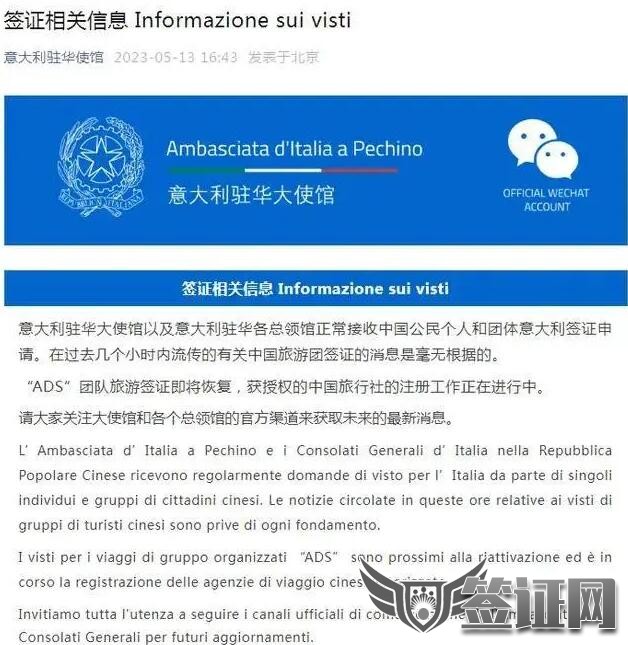 近期,有關“意大利簽證暫停辦理”的消息在社交網絡流傳。 對此,意大利駐華使館于5月13日發布公眾號信息稱,意大利駐華大使館以及意大利駐華各總領館正常接收中國公民個人和團體意大利簽證申請。“在過去幾個小時內流傳的有關中國旅游團簽證的消息是毫無根據的。” 根據一張網絡上的截圖,此次意大利領事館突然暫停簽證或許與一個近期非法滯留意大利的400人溫州旅游團有關。部分自媒體則稱,該旅游團是通過上海某知名旅行社的簽證負責人送簽,具體滯留人數從40-400名則均有不同說法,目前負責協助該滯留團送簽證的人士已經被警方控制。 據浙江當地媒體“潮新聞”5月12日報道,溫州市旅行社行業協會副會長金占在接受采訪時表示,截至目前,溫州各大旅行社并沒有發生游客滯留歐洲情況,溫州地區目前也僅有一個由旅行社組織前往意大利的團隊,是4月初有17個學生代表中國參加青少年足球比賽,其他最早前往意大利的旅游團計劃在6月份出行,現在還沒有辦理簽證。 意大利簽證服務中心官方網站顯示,自2022年6月1日起,北京意大利簽證中心恢復全類別簽證類型的受理(周一到周五全天),上海意大利簽證中心恢復全類別簽證類型的受理(周一、周三、周五),重慶和廣州意大利簽證中心也是正常開放狀態(周一到周五全天)。現在,上海意大利簽證中心僅對已在線預約的申請人進行受理,非預約不接待,辦理簽證的出發時間需要提前21-14天,如有特殊情況酌情處理。 意大利駐華大使館同時表示,“ADS”團隊旅游簽證即將恢復,獲授權的中國旅行社的注冊工作正在進行中,請關注大使館和各個總領館的官方渠道來獲取最新消息。公開資料顯示,“ADS” 團隊旅游簽證僅限于在被批準的一個國家內旅游,不可簽轉、不可延期,且必須團進團出。 疫情之前,意大利是中國游客赴歐洲旅游的主要目的地之一。根據意大利國家統計局的數據,2019年意大利共接待中國游客535.6萬人次,是當年中國游客到訪最多的歐洲國家之一。今年3月,文化和旅游部官網公布了關于試點恢復旅行社經營中國公民赴有關國家(第二批)出境團隊旅游業務的通知。通知顯示,自2023年3月15日起,開放中國前往第二批40個國家的出境團隊游和“機票+酒店”業務,意大利在名單上的11個歐洲國家中。 |