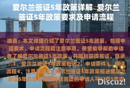 本文詳細介紹了愛爾蘭簽證5年政策,包括申請要求、申請流程和注意事項。希望能夠幫助申請者了解愛爾蘭簽證5 ...
